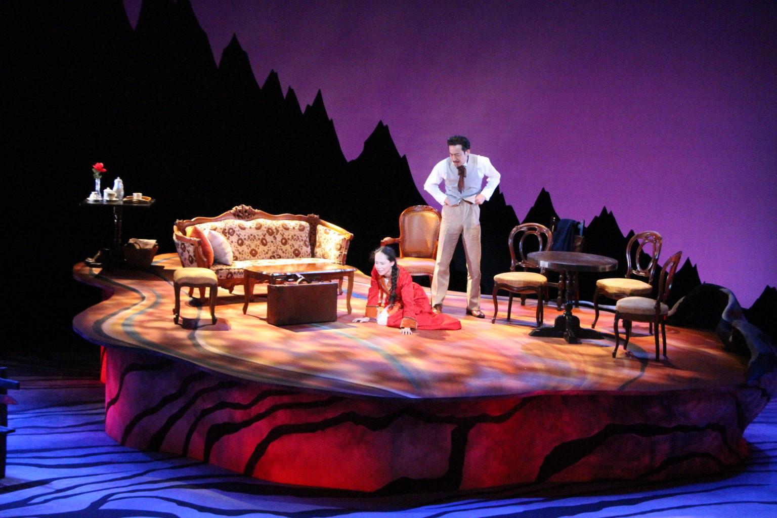 加藤:脚本はイプセンで、ト書きに装置の描写がすごく綿密に書かれていて、その通り絵を描いたら大変なことになると感じました。1 幕はある夫婦のお屋敷のガーデンルームで、2 幕はフィヨルドの湖の岸辺、3 幕はそこから旅立っていく、と変わっていきます。日常の生活からどん底に落ちた人間の再起を描いていて、最後は夫婦は前を向いて生きてゆくという話なんです。