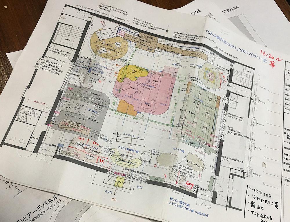 普段はもっと入り組んだスペースになってて、わざとに隠れたエリアをこしらえたりします。ですが今回はコロナの影響で密閉する狭い空間を作れず…