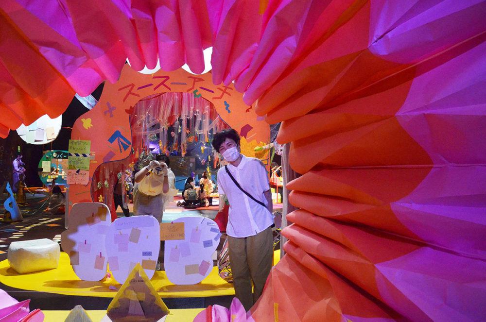 ―――そうですか。後でゆっくり伺いたいですね。それにしても会場を回ってみて沢山の造形物に可愛いモチーフ、色もカラフルで幻想的かつポップな空間。素晴らしいです。