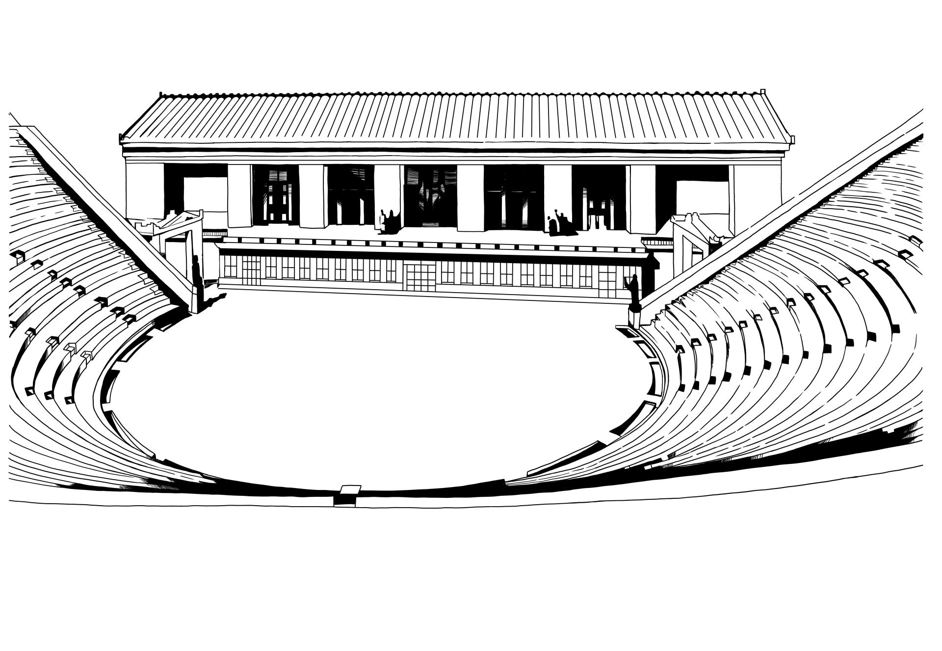 (図 1)ギリシャ・ローマ時代の半円型劇場 (複製図 日本舞台美術家協会)