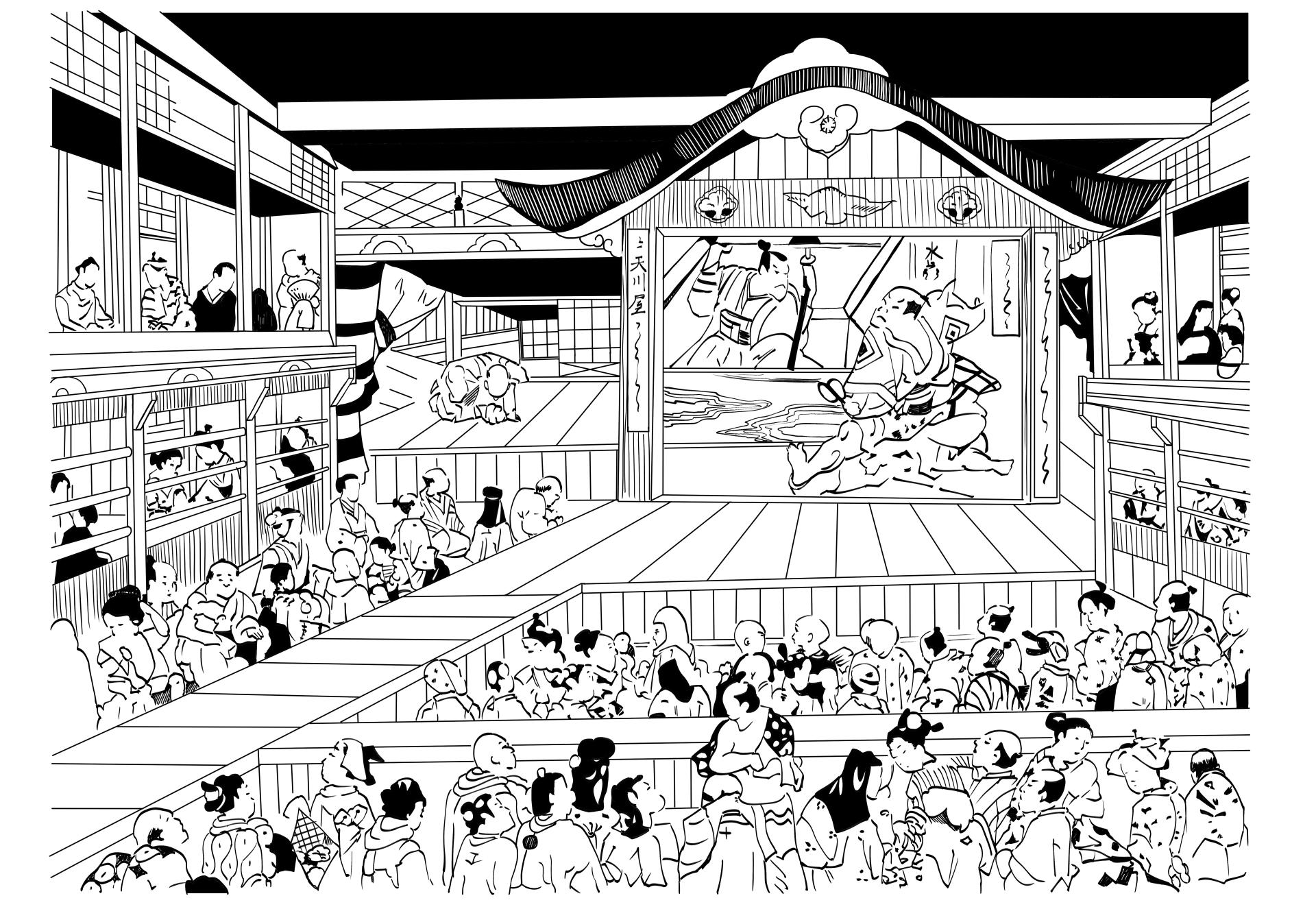 (図4)江戸中期(寛延 2 年) 江戸堺町・中村座の場内 (複製図 日本舞台美術家協会)