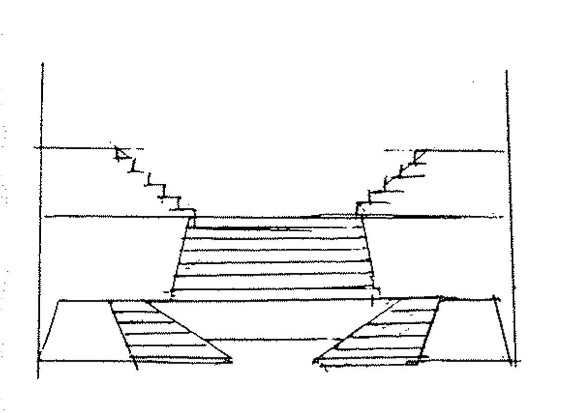 となり、標準を上まわっていることを示しています。これはこの大階段は標準的な階段にくらべて、蹴上の寸法は小さいが、踏面が大きいからで、これも長い宝塚レビューの経験から、フィナーレの衣裳で、ロングスカートや時にはスカートを長くひいたり、ハイヒールの場合、それに、上段から客席を見おろした時の恐怖感を少なくするためとかが広い踏面と、低い蹴上の寸法を決めたにちがいありません。