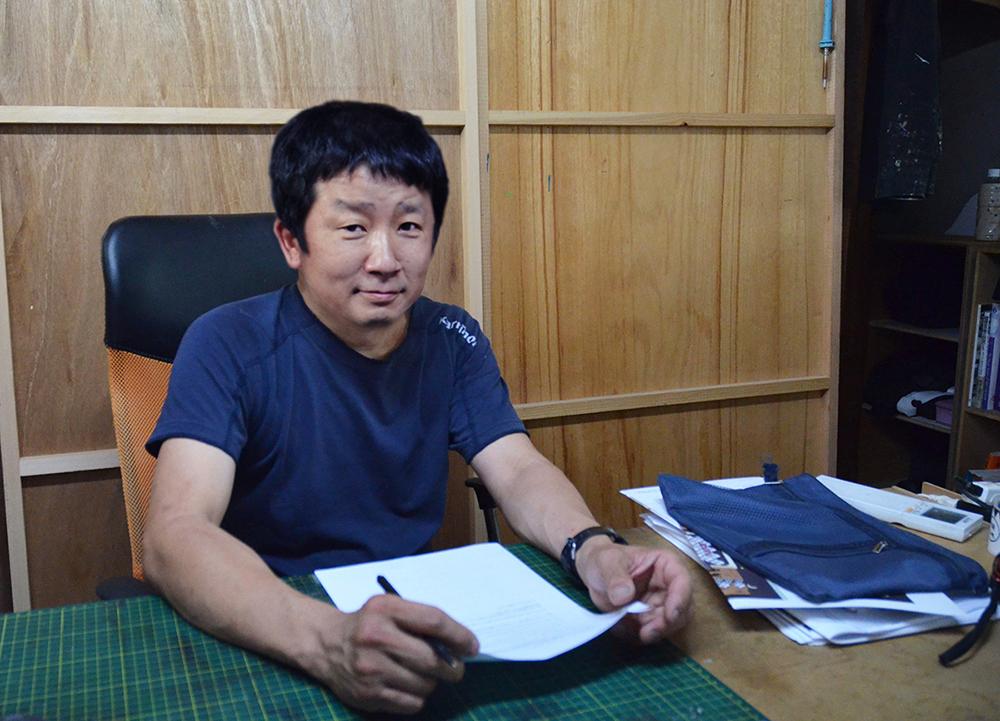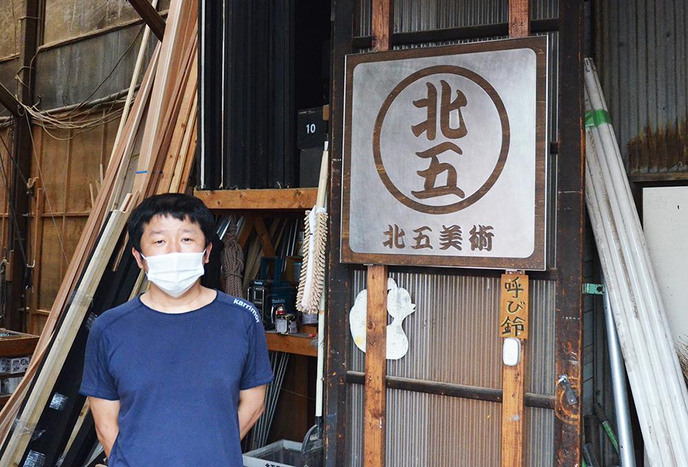 アトリエ兼作業場でお話しいただきました柴田さん。屋号は北五美術。