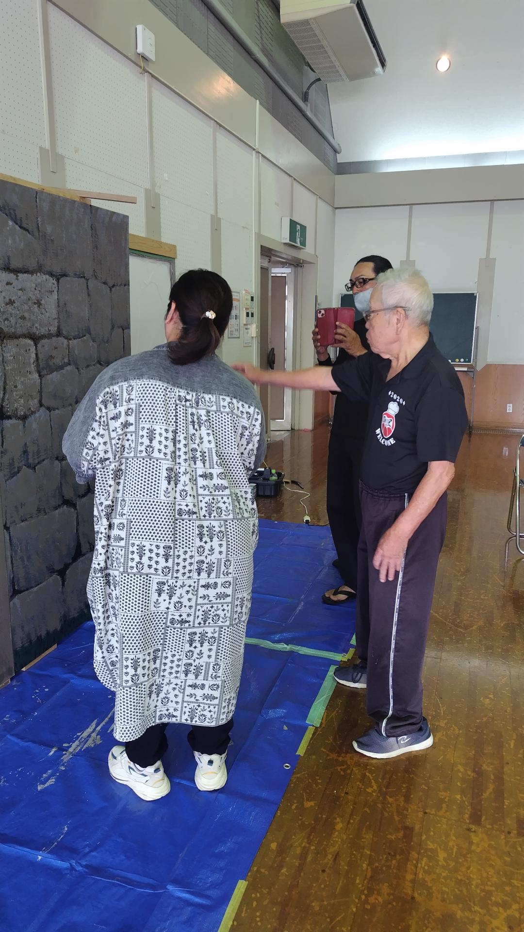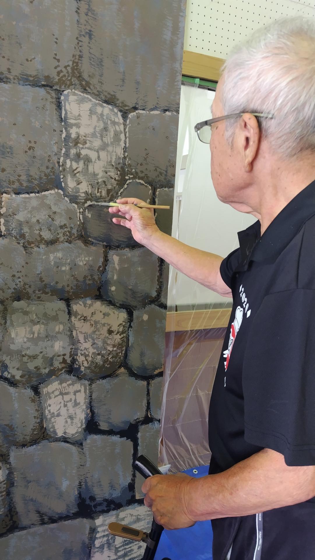 2025 年 10 月 26 日 若手に背景の仕方を教える新城喜一さん