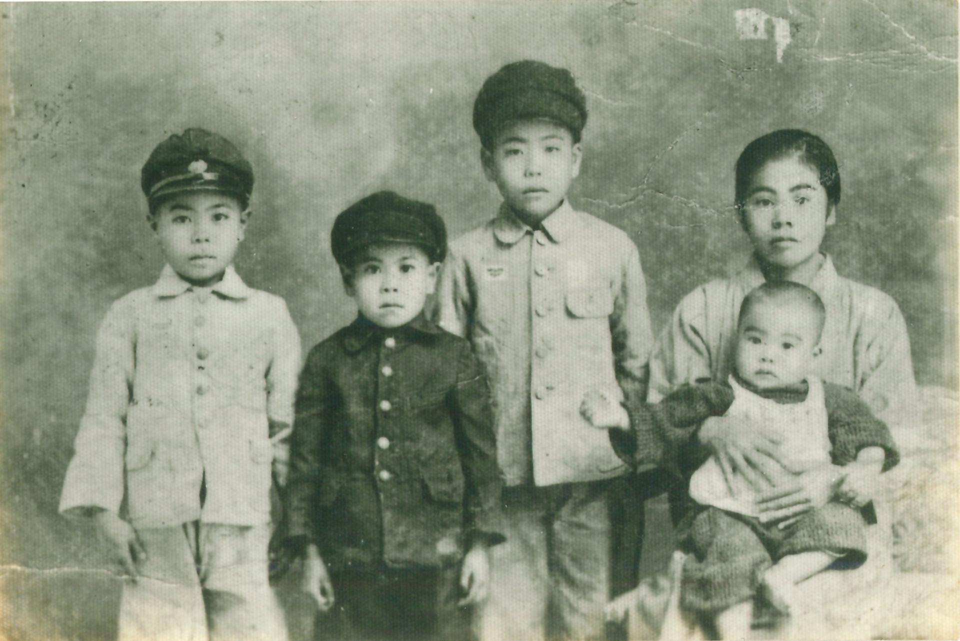 右から母と四男盛考 長男喜一 三男榮德 二男榮市